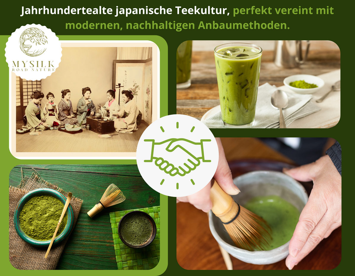 Genießen Sie den unverwechselbaren Geschmack und die zahlreichen Vorteile von echtem japanischem Matcha – ein Symbol für Qualität, Tradition und Lebensfreude.